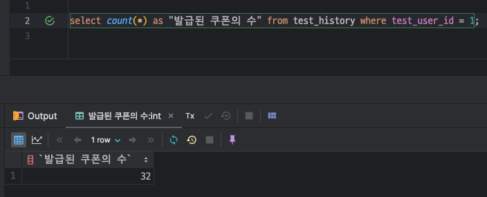 실제로 쿠폰을 사용한 유저의 수는 32명이다. 즉, 기존의 쿠폰의 수량인 20개보다 더 많은 수량이 발급이 되었다는 의미이다.