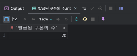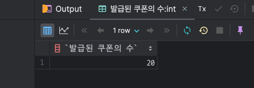 테스트 결과 20개의 쿠폰이 모두 발급이 된것을 확인할 수 있다. 그렇다면 실제로 쿠폰을 사용한 유저도 20명일까?