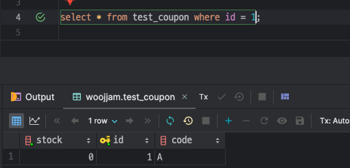 성공적으로 쿠폰이 발급되었고, select ... for update 쿼리문이 실행된 것도 확인할 수 있다